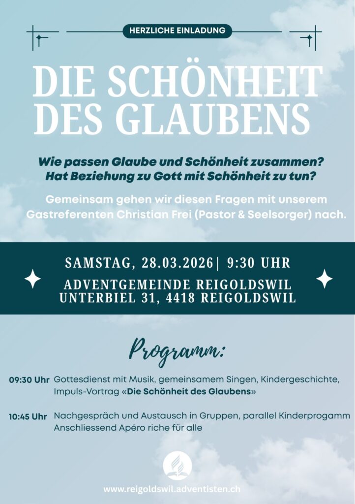 Herzliche Einladung zum speziellen Gottesdienst diesen Samstag mit dem Thema „Die Schönheit des Glaubens“.